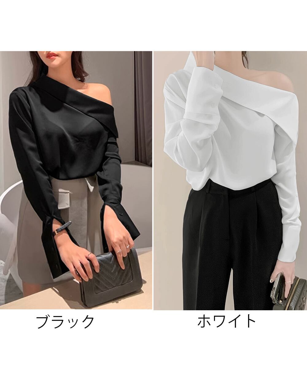 シャツブラウス レディース 肩出しプルオーバー オフィスカジュアル ワンショルダートップス きれいめ セクシーブラウス春