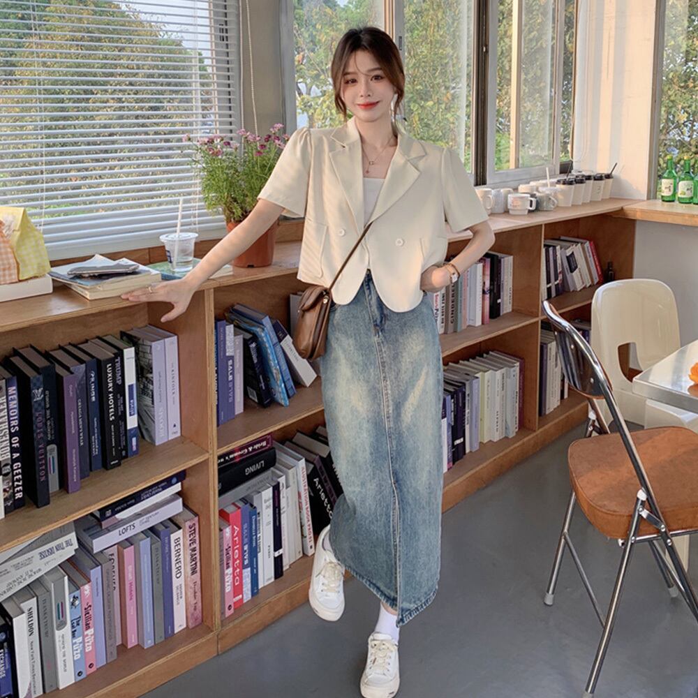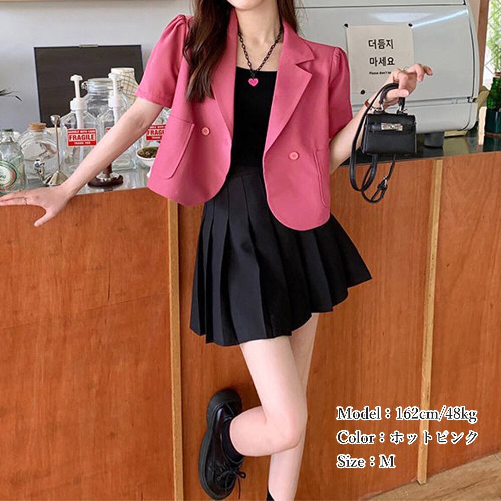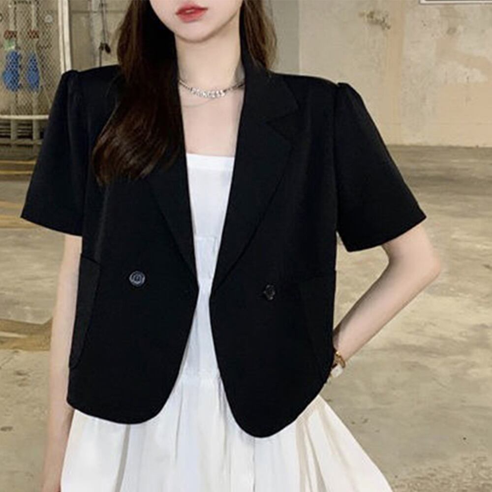ショート丈 テーラードジャケット Vネック 短丈春夏アウター 襟付き軽アウター 韓国おしゃれ夏羽織り サマージャケット黒